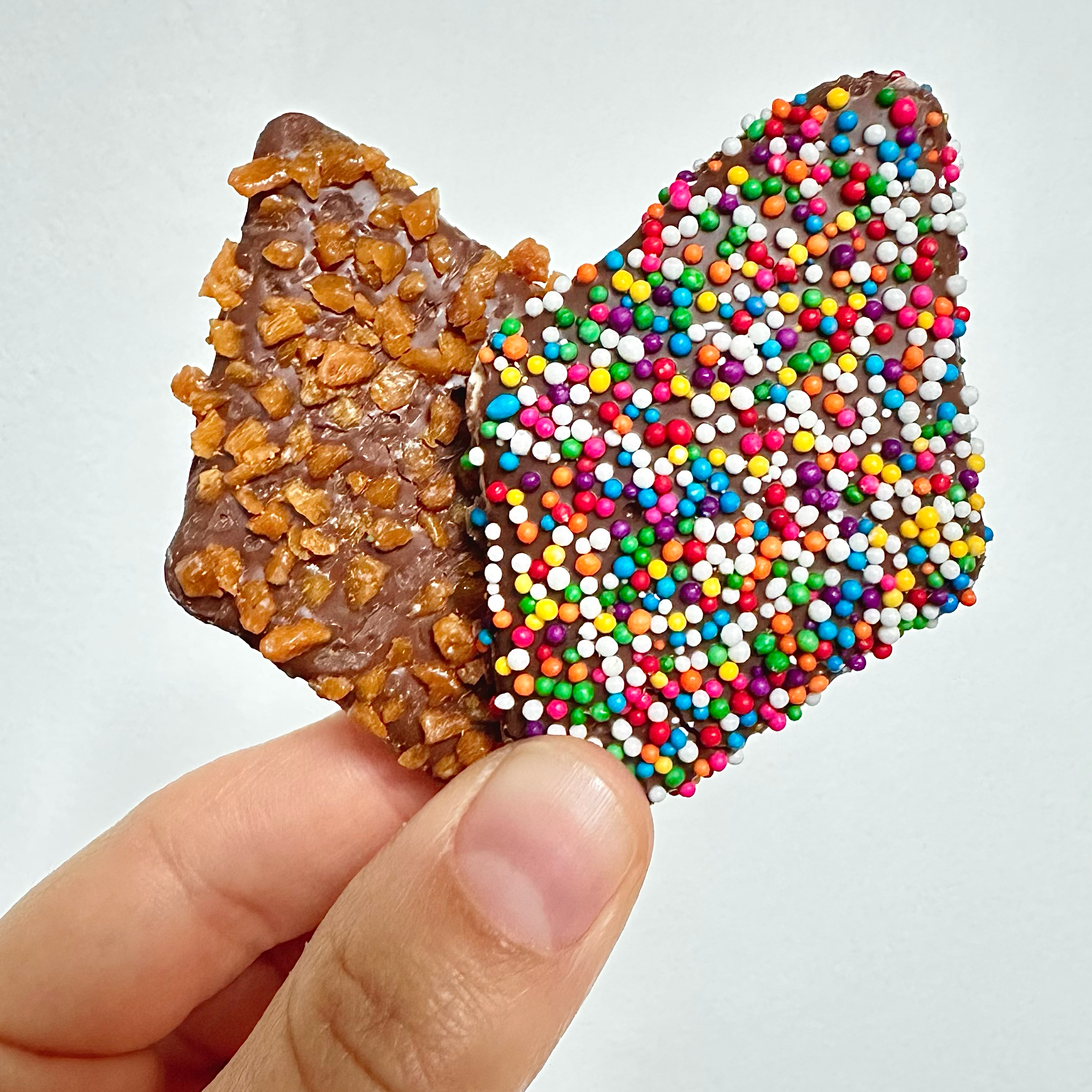 We absolutely could not wait for Passover to roll around again so we teamed up with our friends at The Matzo Project to drench their perfectly salted matzo chips in decadent, creamy milk chocolate and then generously coat them in rainbow sprinkles and butter crunch. The result is... insanely delicious!!!